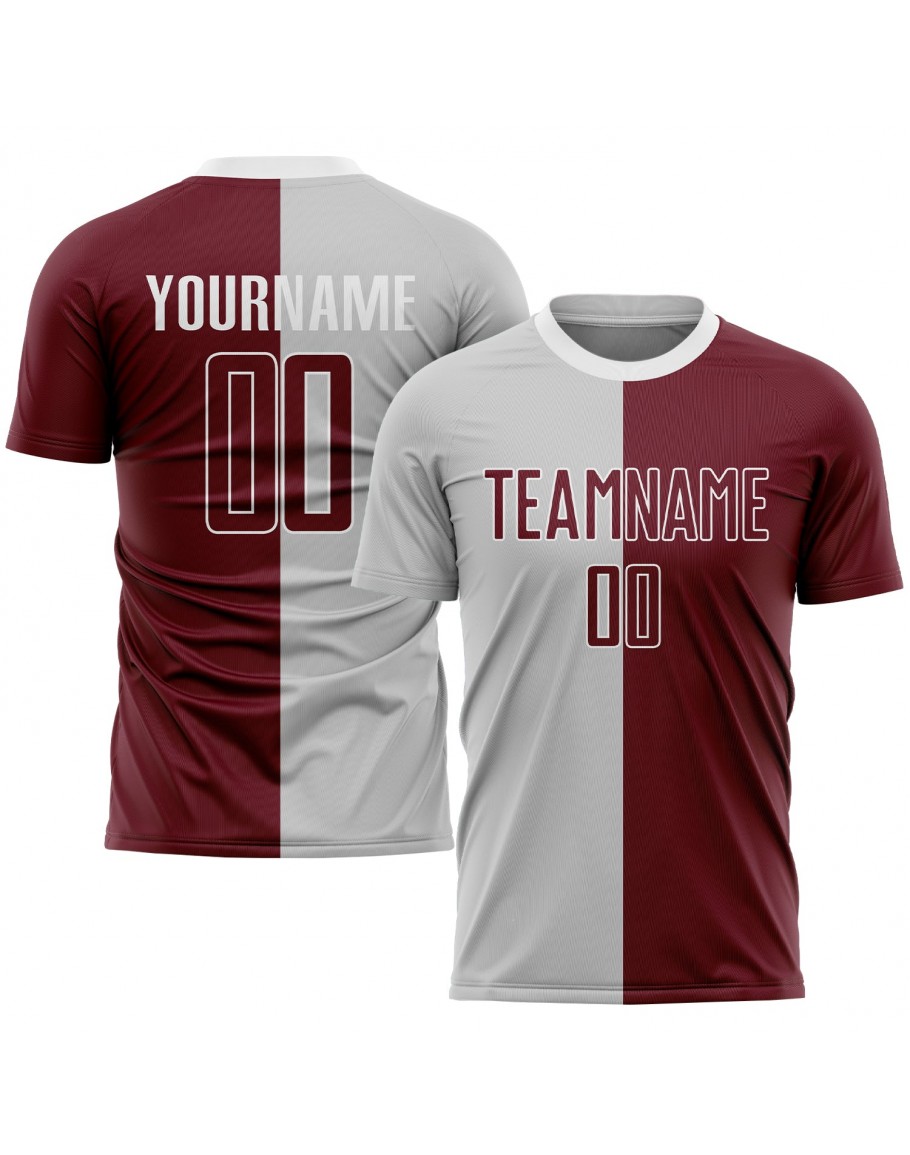 Custom Gray Crimson-White Sublimation Split Fashion Soccer Uniform Jersey