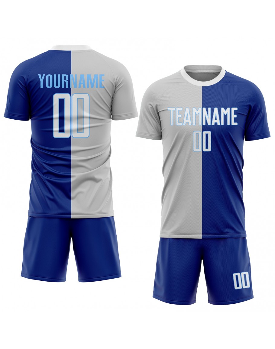 Best Pro Custom Royal White-Gray Sublimation Split Fashion Soccer Uniform Jersey