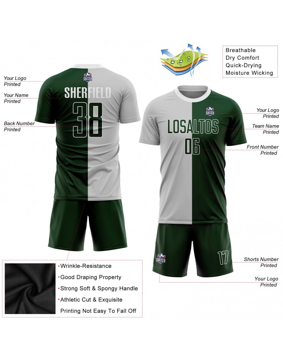Best Pro Custom Gray Green-White Sublimation Split Fashion Soccer Uniform Jersey