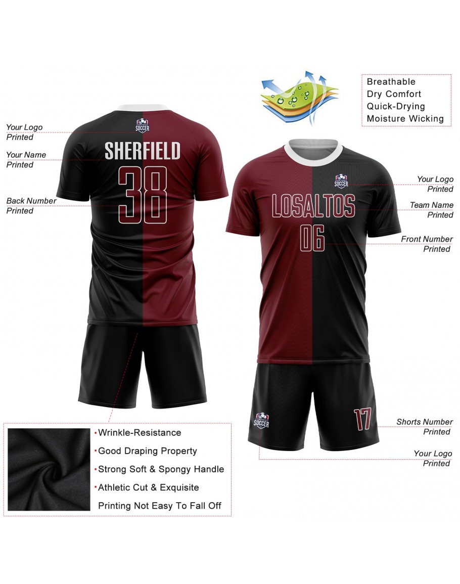 Best Pro Custom Black Crimson-White Sublimation Split Fashion Soccer Uniform Jersey