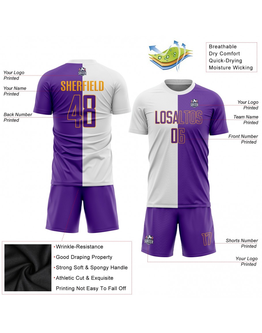 Best Pro Custom White Purple-Gold Sublimation Split Fashion Soccer Uniform Jersey