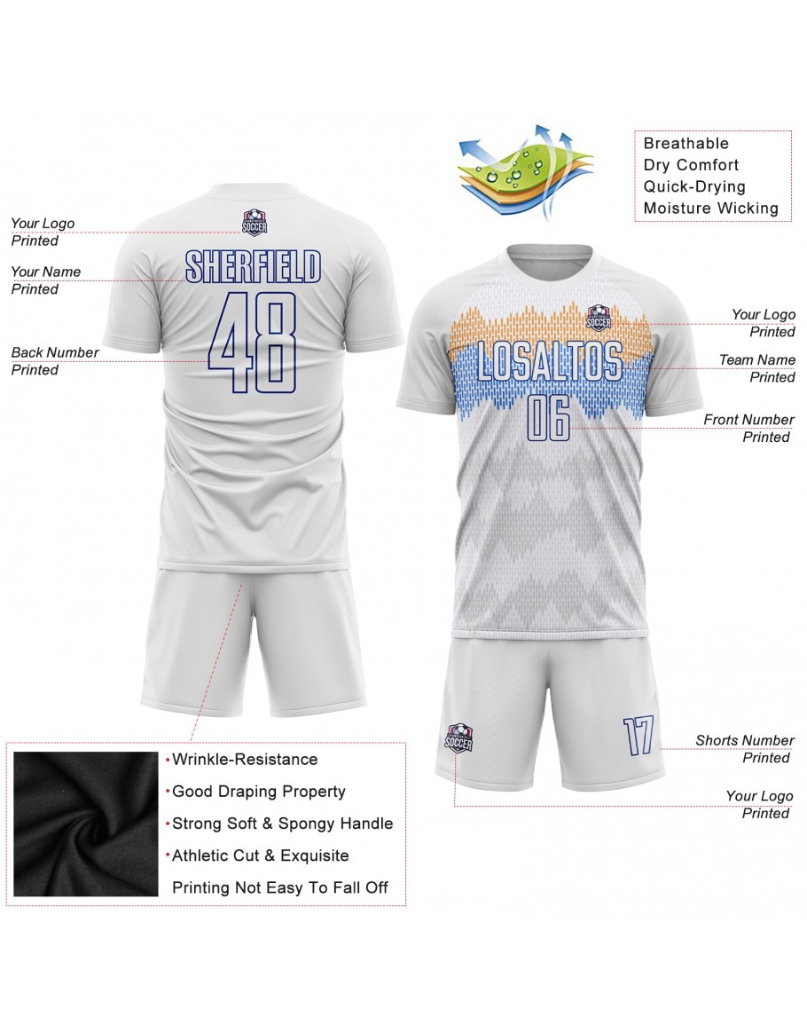 Custom White Royal Sublimation Soccer Uniform Jersey