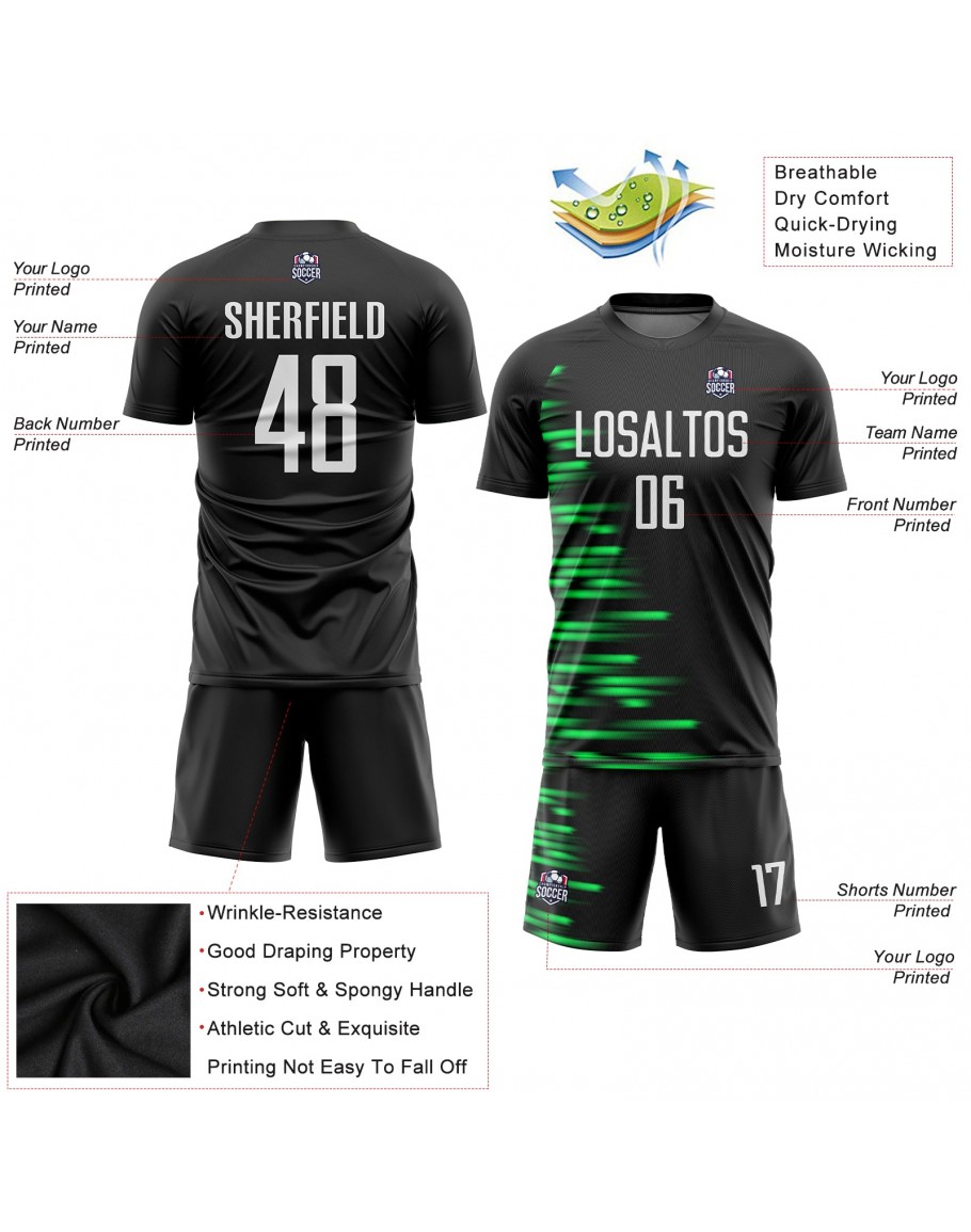 Best Pro Custom Black White-Kelly Green Sublimation Soccer Uniform Jersey