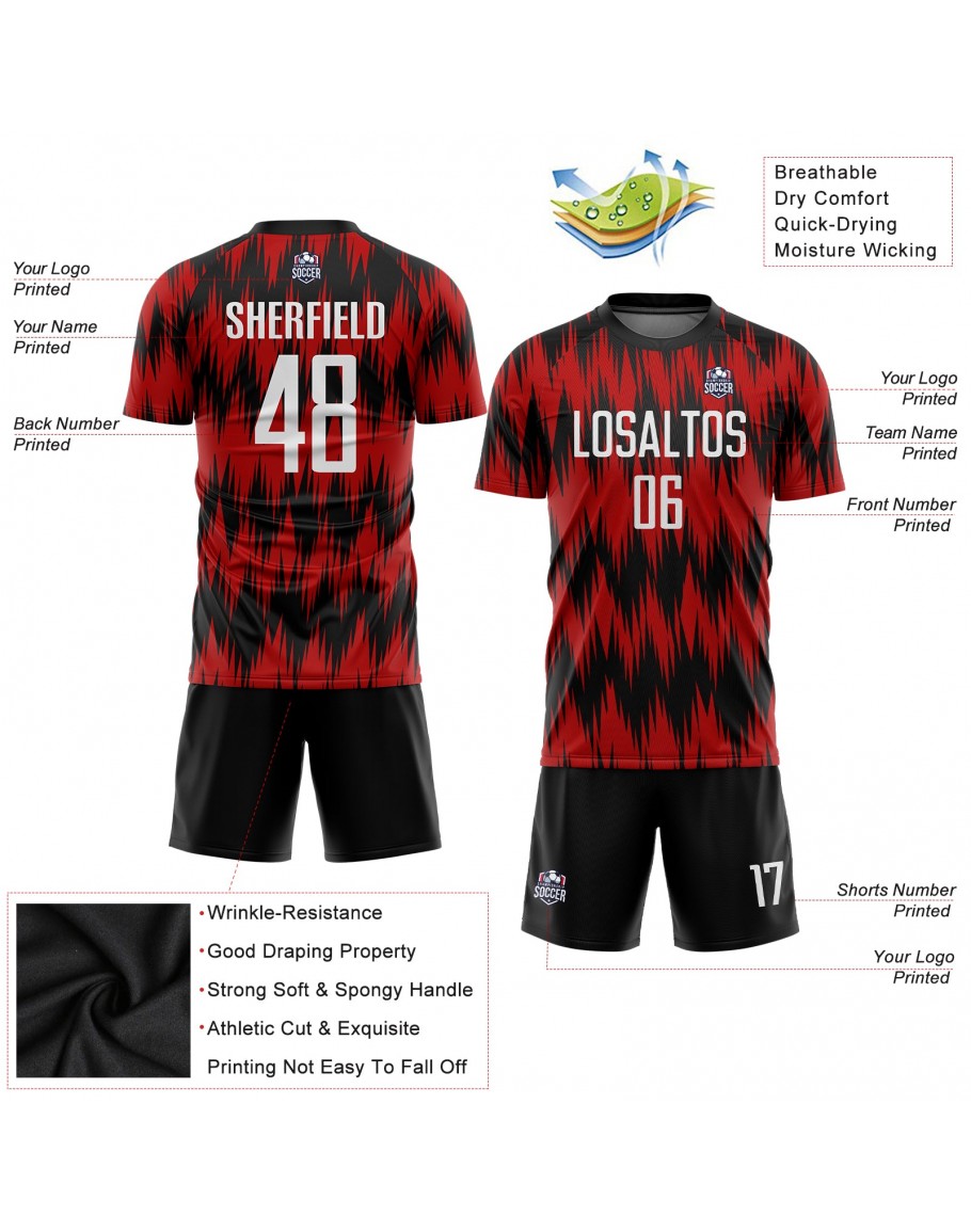 Custom Red White-Black Sublimation Soccer Uniform Jersey
