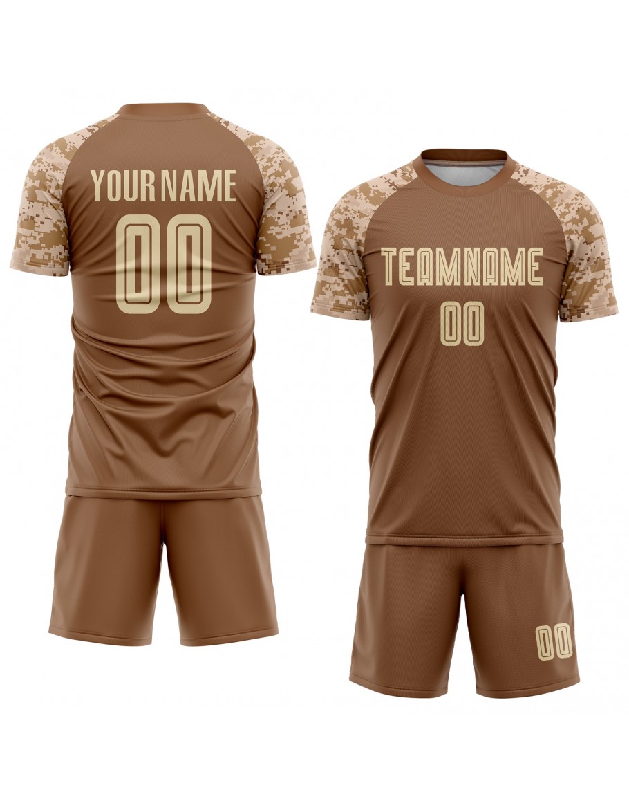 Custom Brown Cream-Camo Sublimation Soccer Uniform Jersey