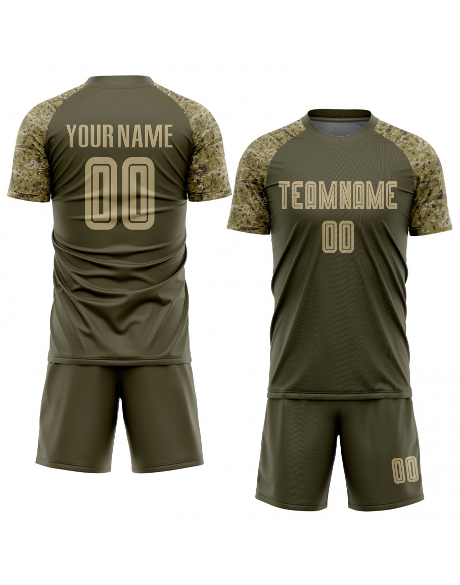 Best Pro Custom Olive Vegas Gold-Camo Sublimation Salute To Service Soccer Uniform Jersey