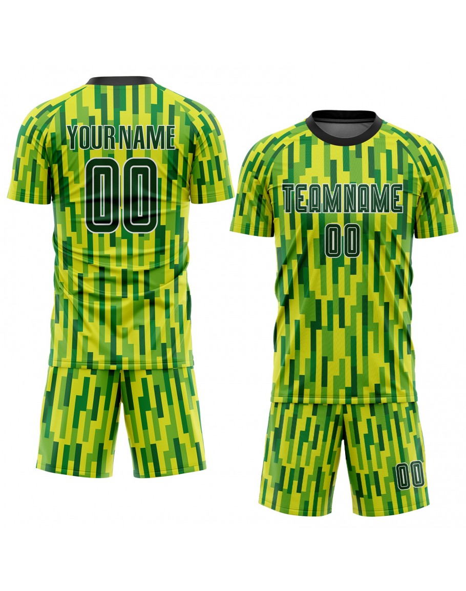 Custom Neon Green Green-Gold Sublimation Soccer Uniform Jersey